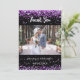 Celebrate your special day and express your heartfelt gratitude with our Custom Photo Wedding Cards, elegantly designed with a sophisticated black background and adorned with purple confetti. Perfect for sharing your favourite wedding memories, these cards are both stylish and personal, offering a unique way to thank your guests. Personalise and add your photo and thank you note.