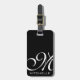 custom luggage tag with leather strap: large script monogram and name with QR Code