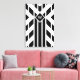 Striking black and white geometric pattern features black quadrilaterals aligned in stripes. The parallelograms angle towards a black diamond outlined with white in the upper third of the image. The diamond contains a customisable monogram. Three bold black stripes extend from the bottom of the diamond to the base of the vertical design.