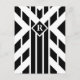 Striking black and white geometric pattern features black quadrilaterals aligned in stripes. The parallelograms angle towards a black diamond outlined with white in the upper third of the image. The diamond contains a customisable monogram. Three bold black stripes extend from the bottom of the diamond to the base of the vertical design.