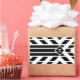 Striking black and white geometric pattern features black quadrilaterals aligned in stripes. The parallelograms angle towards a black diamond outlined with white in the upper third of the image. The diamond contains a customisable monogram. Three bold black stripes extend from the bottom of the diamond to the base of the vertical design.