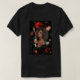 I give wanted to give this a 4 instead of a 5 because these Basic DARK T0shirts run unexpectedly SLIM or Narrow. Which is great if you do not have a potbelly, but I have a paunch. It isn't the shirt's fault that I've got a beer belly. The design and shirt itself is a quality cotton shirt. The color is more of a deep purple, but still a very pretty color. The Basic DARK T-shirts run a bit SLIMMER than the Basic Ts. The neck is a fraction narrower (or seems to be narrower) also. I'm a paunchy middle-aged woman and my neck is 12 inches (31cm) thick and the neckline fell about the same as in the photo of the man, and I had the desire to tug it a bit. So if you're a thick necked man or like loose shirts, be aware these are slimmer shirts. Once I get rid of my lockdown paunch it'll look great. The shirt washed well in cold water with no apparent bleeding. We don't have a dryer, so it hung dry. Did not shrink. Love the colors and the design. The design looks smaller on my shirt than it does on the model on-line. But still, it looks good on the shirt. The printing looks as it does on the model, just the size seems fractionally smaller. Washed garment in cold water, hung dry and design appeared unaffected.