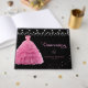 Collect your guest's name and messages in this beautiful pink and black design, with string lights at top front and photo on back. Princess gown in pink with pink sparkly glitter. Script Quinceañera text with name and date, swirly motif, and glitter at lower right.