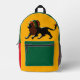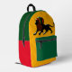 Black Rasta Lion is a fun festive multi-colour design. The graphic of the black Dredloc Rasta lion on the prowl adds to the special character of this item. However, you can remove the lion and personalise the backpack with your art, name, or message.