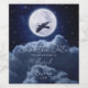 A background in dark blue and black represents the night sky and serves as the backdrop for a full moon and stars peeking out from behind some clouds. A jet black raven soars across the sky and completes this dark Gothic inspired design.