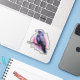 Contour sticker with an image of a black crow with purple pink wings. A pink watercolor splatter behind this lovely mystical bird.