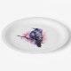 Paper plates with an image of a black crow with purple pink wings. A pink watercolor splatter behind this lovely mystical bird.