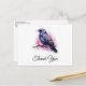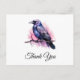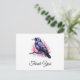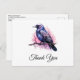 Thank you postcard with an image of a black crow with purple pink wings. A pink watercolor splatter behind this lovely mystical bird.