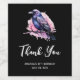 Bottle labels with an image of a black crow with purple pink wings. A pink watercolor splatter behind this lovely mystical bird.