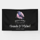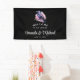 Wedding welcome banner with an image of a black crow with purple pink wings. A pink watercolor splatter behind this lovely mystical bird.
