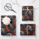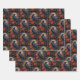 Patterned wrapping paper sheets with a black crow perched on a branch surrounded by red flowers. Cool gothic vibe.