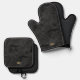 Black Realistic Fur Texture Monogram Oven Mitt & Pot Holder Set