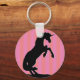 Rearing unicorn in silhouette on a simple pink and orange striped background. The perfect gift for your unicorn lover. Designed by Robin Cox.