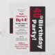 A clean and bold birthday invitation that features a new decade reached–40, 50, 60, 70, etc. The words “Happy Birthday” run vertically along the right side of the card for a fun and modern feel. You can customise the age next to the announcement. Choose from four different colour schemes: blue & orange, black & white, black & red, or the vintage brown, grey, and red.