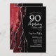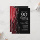Black red and white agate 90th birthday party invitation. Elegant modern design featuring watercolor agate marble geode background, faux glitter silver and typography script font. Trendy invite card perfect for a stylish women's bday celebration. Printed Zazzle invitations or instant download digital printable template.