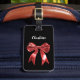 A black background, decorated with a large red bow on the front. Personalise and add your name on the front. Your contact information on the back.