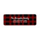 This simple yet elegant return address label featuresour names and return address in white and lettered script on a black and red buffalo plaid check background. Coordinates well with other items from this collection: