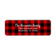 This simple yet elegant return address label featuresour names and return address in white and lettered script on a black and red buffalo plaid check background. Coordinates well with other items from this collection: