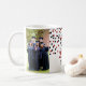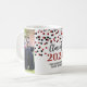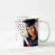Customisable photo template class of 2024 graduation mug with red and black confetti pattern.