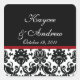 Black & Red Damask Wedding Square Sticker