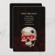 Black floral dark moody gothic skull red roses - scary and spooky Halloween Wedding Save the Date card.