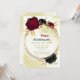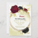 Beautiful birthday party invitation featuring black and red flowers and gold leaves .
