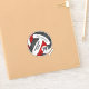 This black, red and white volleyball sticker with custom team and school mascot name features a floral kaleidoscopic pattern blended with the black and red volleyball panels and an artsy abstract swirl pattern blended with the white panels - her name and team name are customisable, as is her jersey number on a tiny white volleyball - by katz_d_zynes