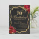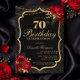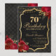 Celebrate in unforgettable style with this dramatic black and gold 70th birthday invitation. Featuring an elegant ornamental frame, rich red florals, and a luxe-inspired layout, this design is perfect for a sophisticated evening celebration.
