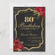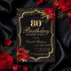Celebrate in unforgettable style with this dramatic black and gold 80th birthday invitation. Featuring an elegant ornamental frame, rich red florals, and a luxe-inspired layout, this design is perfect for a sophisticated evening celebration.