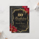 Black, Red & Gold 80th Birthday Invitation