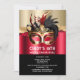 A beautiful faux gold eye mask has red trim around the top of the eyes; decorative floral filigree in the middle and soft black, red and gold feathers on the top that rest against a faux shimmer, sparkling gold, black and red background. Editable white editable text templates appear below the watercolor ai graphic for your custom wording. This design is ideal for a glam and luxurious bachelorette, bridal shower, birthday, sweet sixteen; milestone or quinceanera party. Simply personalise the editable text templates to suit your special occasion.