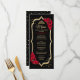 Black gold red Quinceanera menu card. Features script font, red roses, tiara and confetti. Classy design with faux glitter gold. Perfect for an elegant glam celebration.