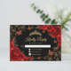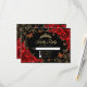 Black, red and gold floral Quinceanera RSVP reply card. Features, script font, silver butterflies, watercolor roses and tiara. Perfect for an elegant princess style glam celebration. Personalize with your own details.