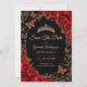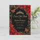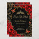 Black red and gold Quinceanera celebration Save The Date card. Features, script font, butterflies, watercolor roses and tiara. Perfect for an elegant princess style glam celebration. Personalize with your own details. Printed Zazzle cards or instant download digital printable template.