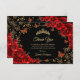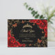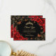 Black, red and gold Quinceanera celebration thank you card. Features, script font, butterflies, watercolor roses and tiara. Perfect for an elegant princess style glam celebration. Personalize with your own details.