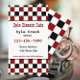 This business card features black red white chequered designed by deluxeforms.