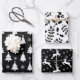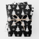 Black Reindeer, Christmas Tree and Holly Patterns Wrapping Paper Sheet