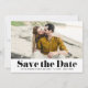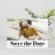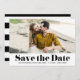 Black Retro Bold Typography Photo Save the Date Announcement. Modern save the date announcement featuring retro bold typography with black and white stripes pattern. Personalised by adding your own details. Other colours are available.