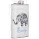 Black Retro Flowers & Elephant Blue Diamonds Hip Flask