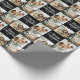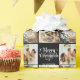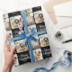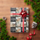 Black Retro Merry Christmas Family 3 Photo Collage Wrapping Paper