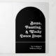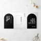 This is an all-in-one Tri-Fold Wedding Invitation that features an elegant and groovy modern minimalist boho design with a retro script font in an arch shape on a black background along with a photo and QR Code. The simplicity of this design adds a touch of elegance to your wedding. It works well with many wedding themes and definitely a great addition to your wedding. Just customise the names and wording in a few easy steps in the text fields and personalise the all-in-one tri-fold invitation card with your photo of the happy couple and replace the QR Codes with yours to give your invitation a nice personal touch. This invitation will save you money to send everything at once. It has a RSVP postcard that your guest can just send it back. Just simply fold each invitation card into the outlined shape -- seal and send to your guests. No envelope is needed for shipping -- just postage.