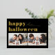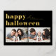 Black Retro Typography Happy Halloween Two Photo Foil Holiday Card