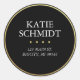 Black round return address label with faux gold foil accents. PLEASE NOTE: The label mimics a foil effect, but is not actually foiled.