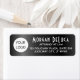 This fully customisable business or promotional return address label has room for your custom business or company logo. Add your name, company name, and return address in the template. Simply replace the sample words with your own. This is on a black background that has an image that makes it look like there is a small amount of shine on it.