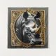 A powerful image featuring a black rhinoceros set against a luxurious gold ornamental frame, conveying a sense of strength and resilience. The contrast between the rugged beauty of the rhino and the intricate, elegant details of the frame creates a visually striking composition.