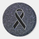 A chrome black style black ribbon awareness decor presented on a midnight blue background for a custom gift to suit any event or occasions. Edit this design with some text if you wish and see your creative efforts come to completion.