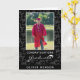 Black Rococo Pattern Congratulations Graduation Photo Card. Trendy white script. Add your favourite photo and personalise it with your grad’s name. Personalise the special message inside or erase it.