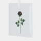 Symbolic, artistically drawn black rose with green stems and leaves on white background. Black rose.