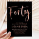 Black Rose Gold 40th Birthday Modern Invitation