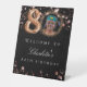 Black rose gold 80th photo birthday party welcome pedestal sign
